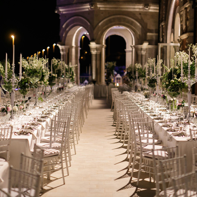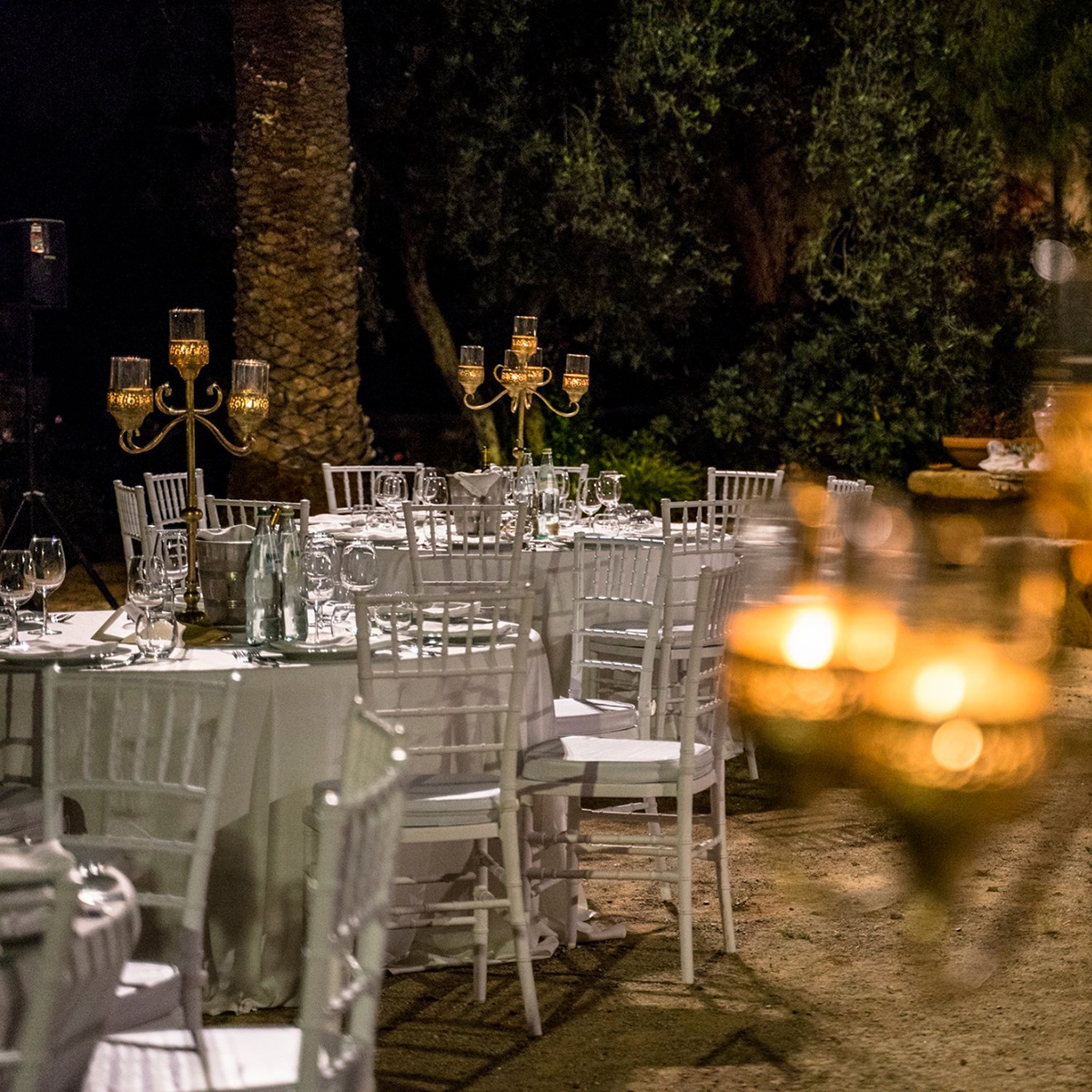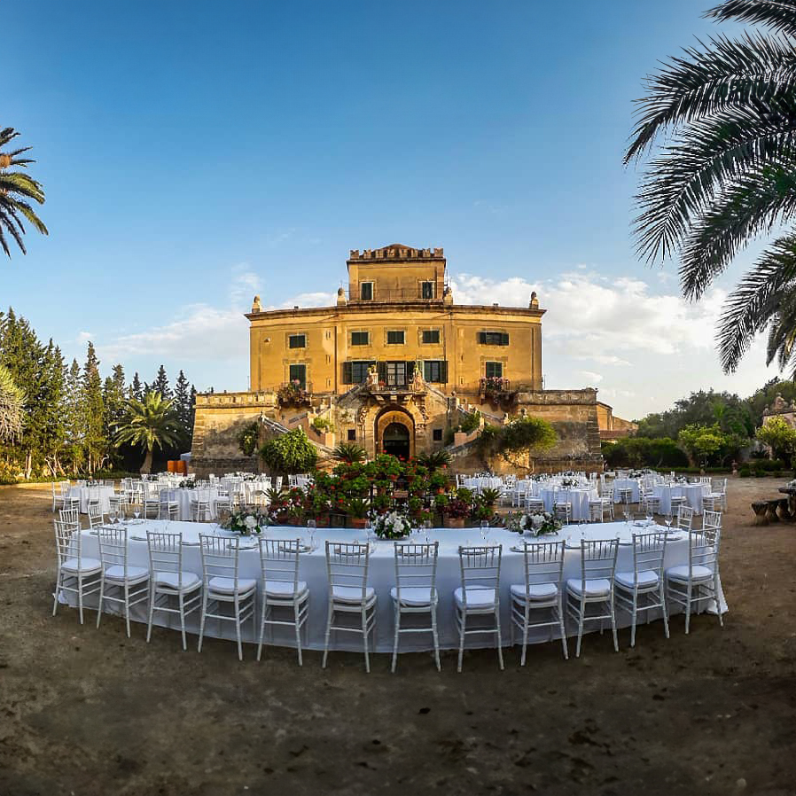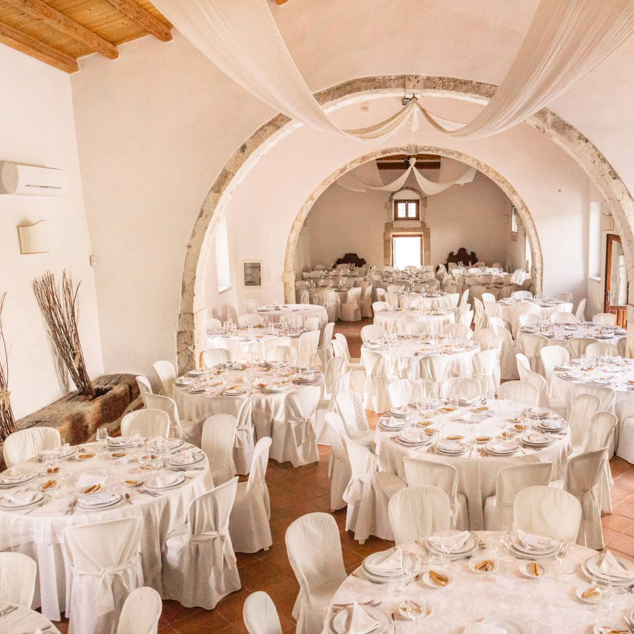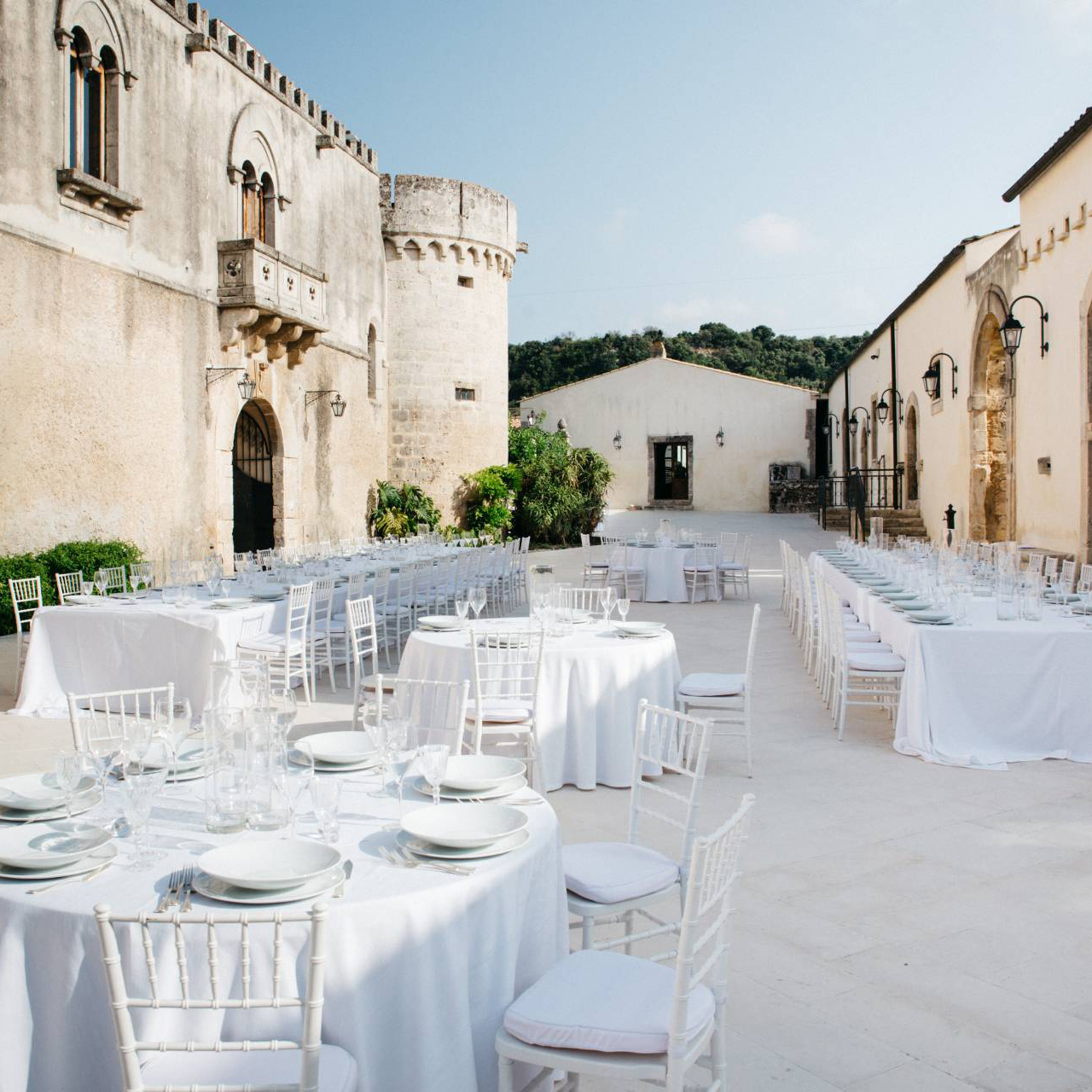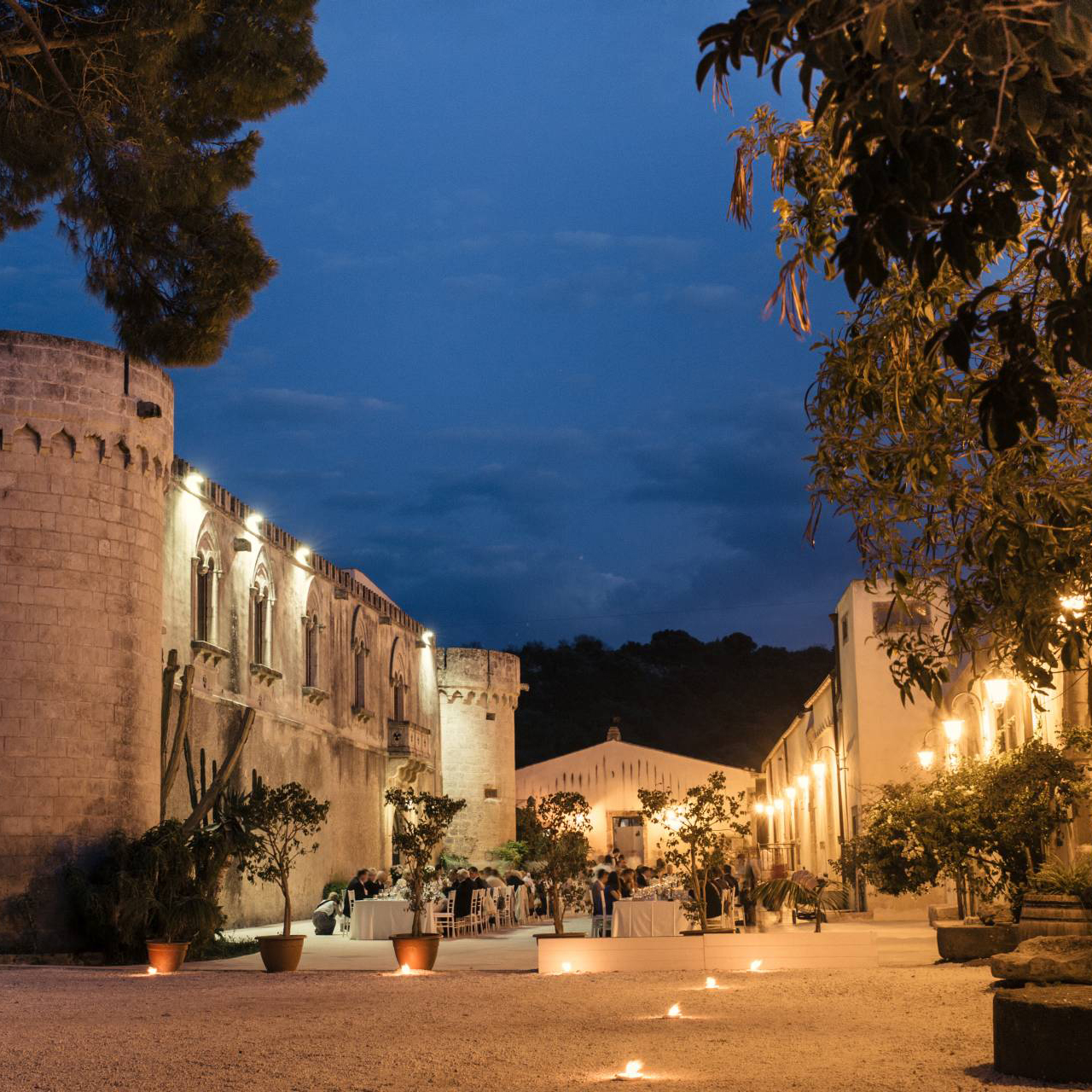 Le ampie sale interne e i cortili esterni sono perfetti per ricevimenti. Gli spazi possono essere allestiti per cene formali, cocktail party e danze. La “Sala dei Baroni” e il “Giardino delle Palme” sono particolarmente popolari per i banchetti.