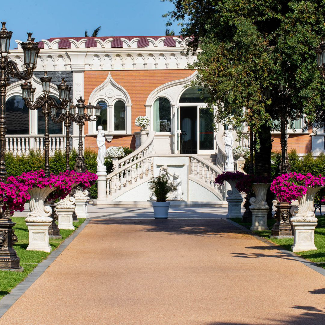 Giardini, cortili e sale interne eleganti sono disponibili per organizzare matrimoni indimenticabili. Gli spazi possono essere allestiti in modo personalizzato per soddisfare le esigenze degli sposi.