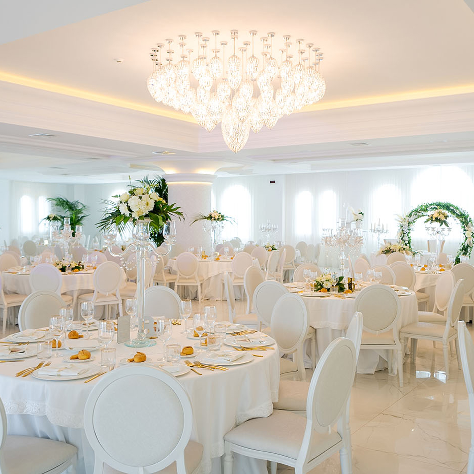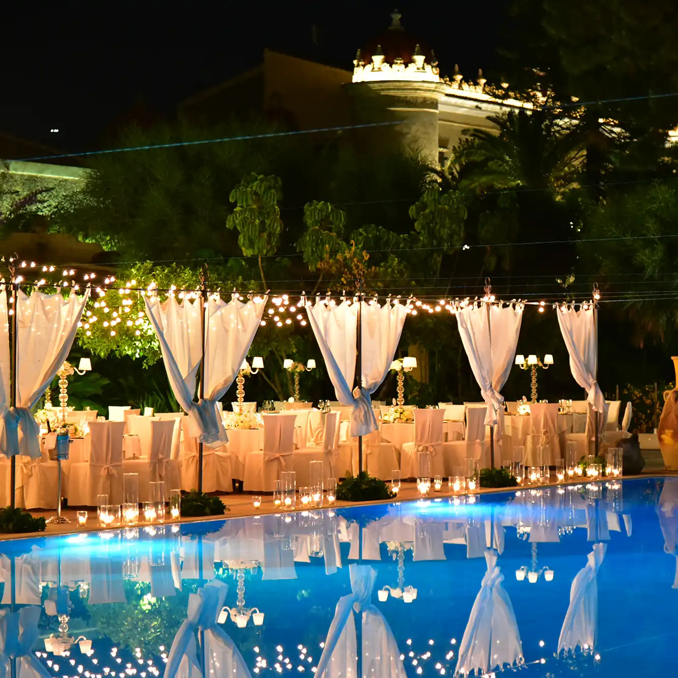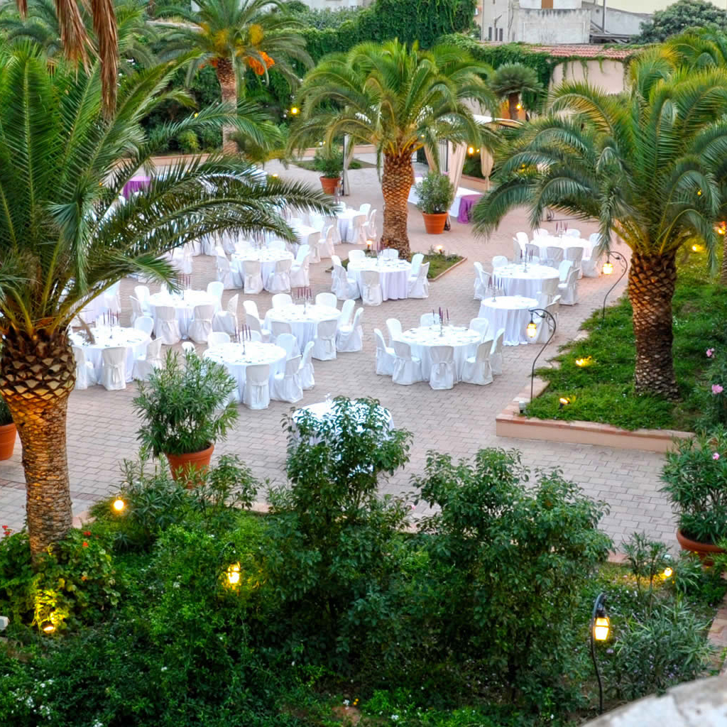 Giardini, terrazze e cortili interni offrono scenari incantevoli per cerimonie all’aperto. Le ampie sale interne, elegantemente decorate, sono ideali per ricevimenti formali.