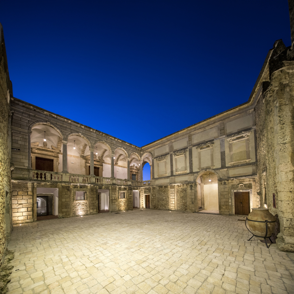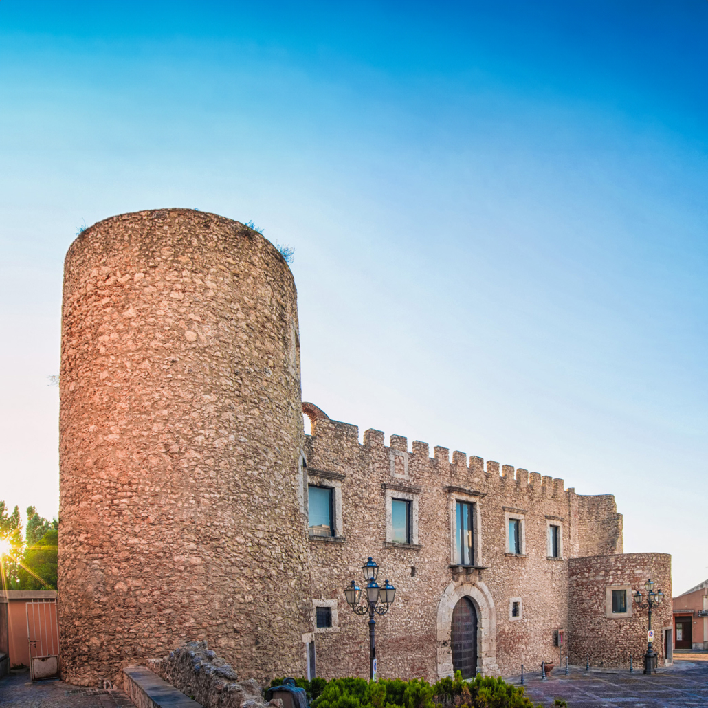 Il Castello Pensabene, noto anche come Castello di Protonotaro, risale al secondo quarto del XIII secolo. La struttura originale fu proprietà dei Marchesi Pensabene nel XV secolo. Nel 1775, un incendio distrusse la seconda elevazione del castello, e per lungo tempo non furono intrapresi interventi di restauro. Solo recentemente sono stati effettuati numerosi lavori per recuperare l’atmosfera medievale originale, preservando le caratteristiche storiche dell’edificio. Uno studio mirato dell’illuminazione ha valorizzato il fascino antico dei vari ambienti del castello.