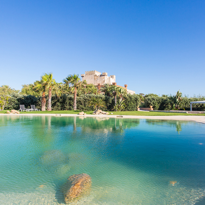 Gli ospiti possono usufruire di una piscina che si integra perfettamente nel paesaggio naturale. Inoltre, il castello ha accesso diretto alla spiaggia attraverso il giardino o una scala interna.