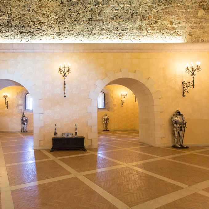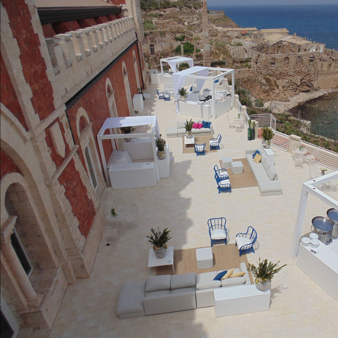 Il castello dispone di un’ampia sala con volte reali e un effetto dorato suggestivo creato dai blocchi di arenaria. Durante la stagione calda, gli eventi possono essere organizzati nei giardini e sulla grande terrazza che può ospitare fino a 400 ospiti. Nei mesi invernali, la Regia Tonnara può accogliere fino a 300 persone.