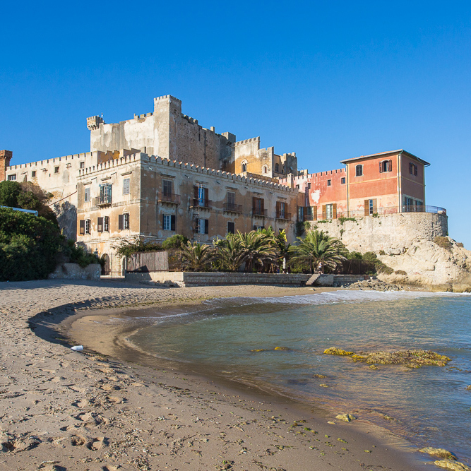 Il Castello di Solanto, situato a Santa Flavia, a circa 15 km da Palermo, è una delle ultime grandi residenze aristocratiche della Sicilia. Costruito durante il periodo normanno come torre di difesa per la vicina tonnara, il castello ha subito varie trasformazioni e ampliamenti nel corso dei secoli. Nel XV secolo, la Regina Bianca di Navarra si rifugiò qui per sfuggire alle mire del Conte Bernardo Cabrera di Modica. Alla fine del XVIII secolo, il castello divenne una residenza estiva per il Re Ferdinando IV di Borbone e la Regina Maria Carolina. Oggi, il Castello di Solanto è un’affascinante location storica che conserva il suo fascino antico e offre una splendida vista sul mare, trovandosi tra due baie pittoresche.