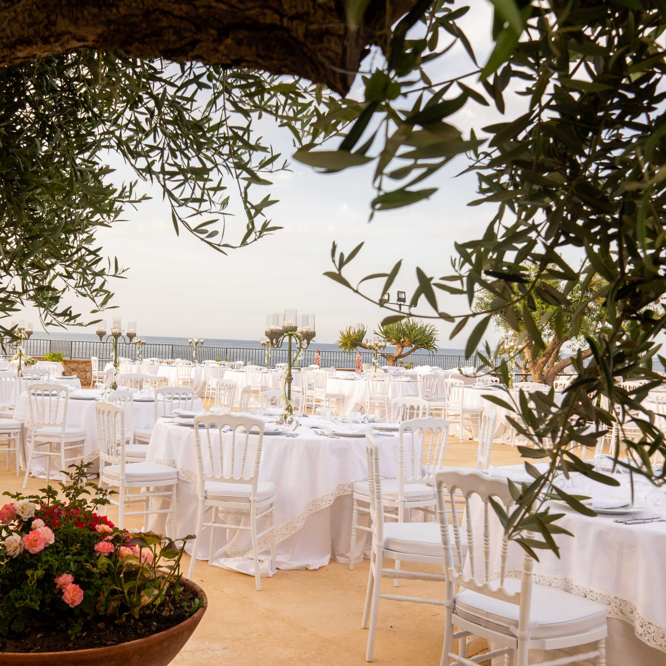 Le ampie terrazze con vista sul mare sono perfette per cerimonie all’aperto e ricevimenti sotto le stelle. Questi spazi possono essere allestiti con archi floreali, luci decorative e eleganti arredi per creare un’atmosfera romantica e suggestiva.