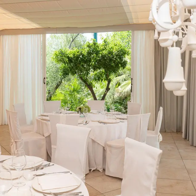 Saloni elegantemente allestiti e giardini curati nei minimi dettagli, ideali per banchetti e ricevimenti.