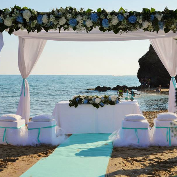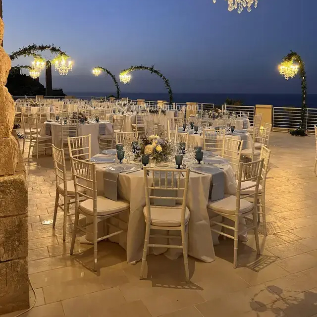 La struttura offre spazi sia interni che esterni, tra cui ampie terrazze con vista mare e giardini curati. Le cerimonie possono svolgersi all’aperto, con la splendida vista del mare come sfondo, e i ricevimenti possono essere organizzati nelle eleganti sale del castello.